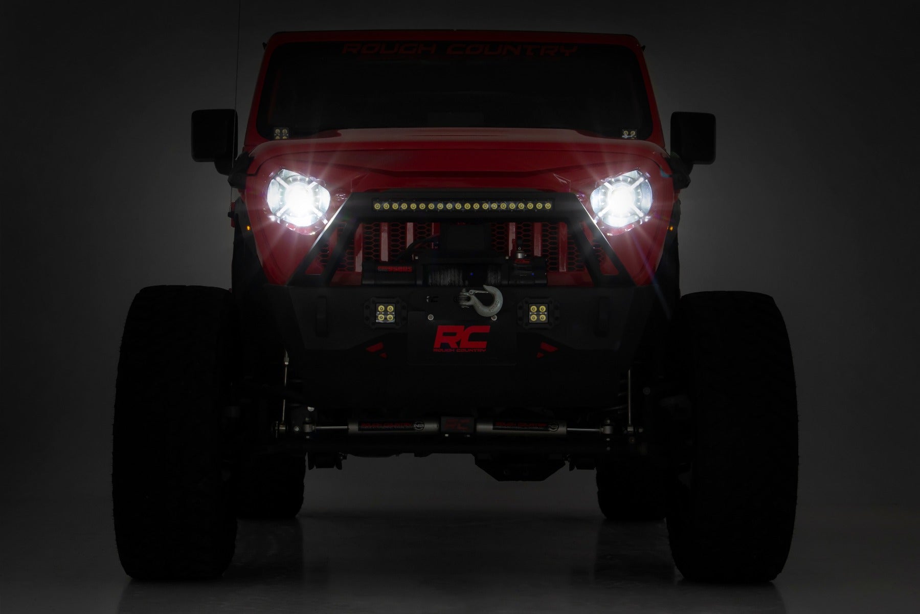 Rough Country?ÇÖs LED Projection Headlights are DOT/SAE certified to be street legal, and feature a durable IP67 waterproof housing for a long lifespan of illumination. Each headlight kit features a 100% bolt-on installation process and includes a handy adapter for easy plug-and-play setup.\